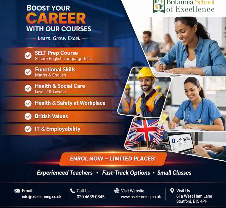 Functional Skills English and Maths help learners develop practical skills needed for everyday life, work, and further education. Courses are available from Entry Level 1 to Level 2, allowing learners to start at the level that suits them and progress step by step.